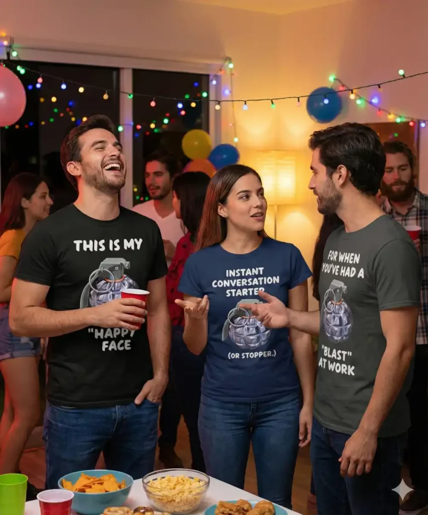 Sometimes a polite smile just doesn’t cut it. Whether you’re looking to break the ice (or shatter it completely), survive another Monday meeting, or just warn people about your current mood, we’ve got you covered. Printed on heavy-duty, ultra-comfortable cotton, these tees are the ultimate statement piece for those who prefer their fashion with a short fuse.