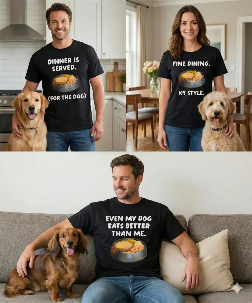 Let’s be honest. Sometimes you’re heating up leftovers while your dog is practically having a five-star dining experience. This t-shirt collection celebrates the undeniable truth of dog ownership: they eat first, they eat best, and we wouldn’t have it any other way. Wear your status as a proud provider of gourmet K9 cuisine.